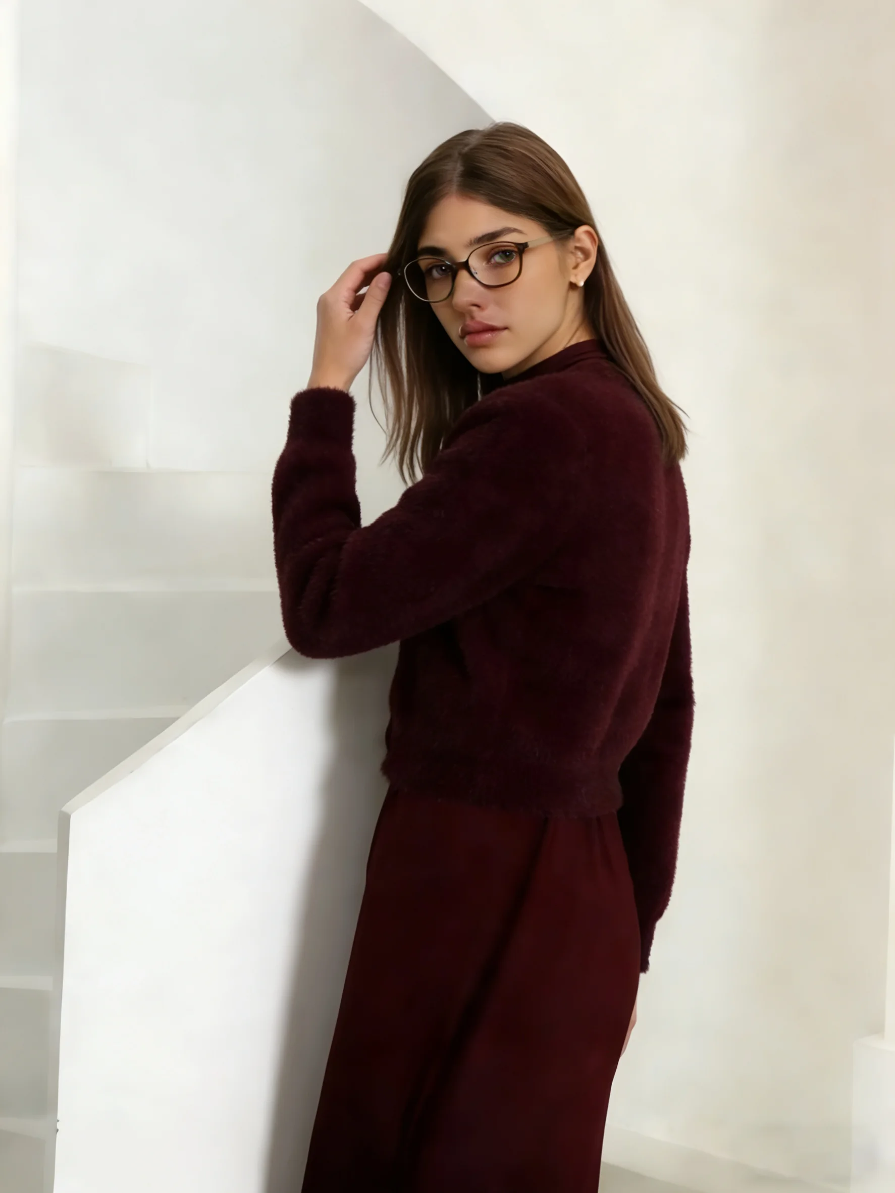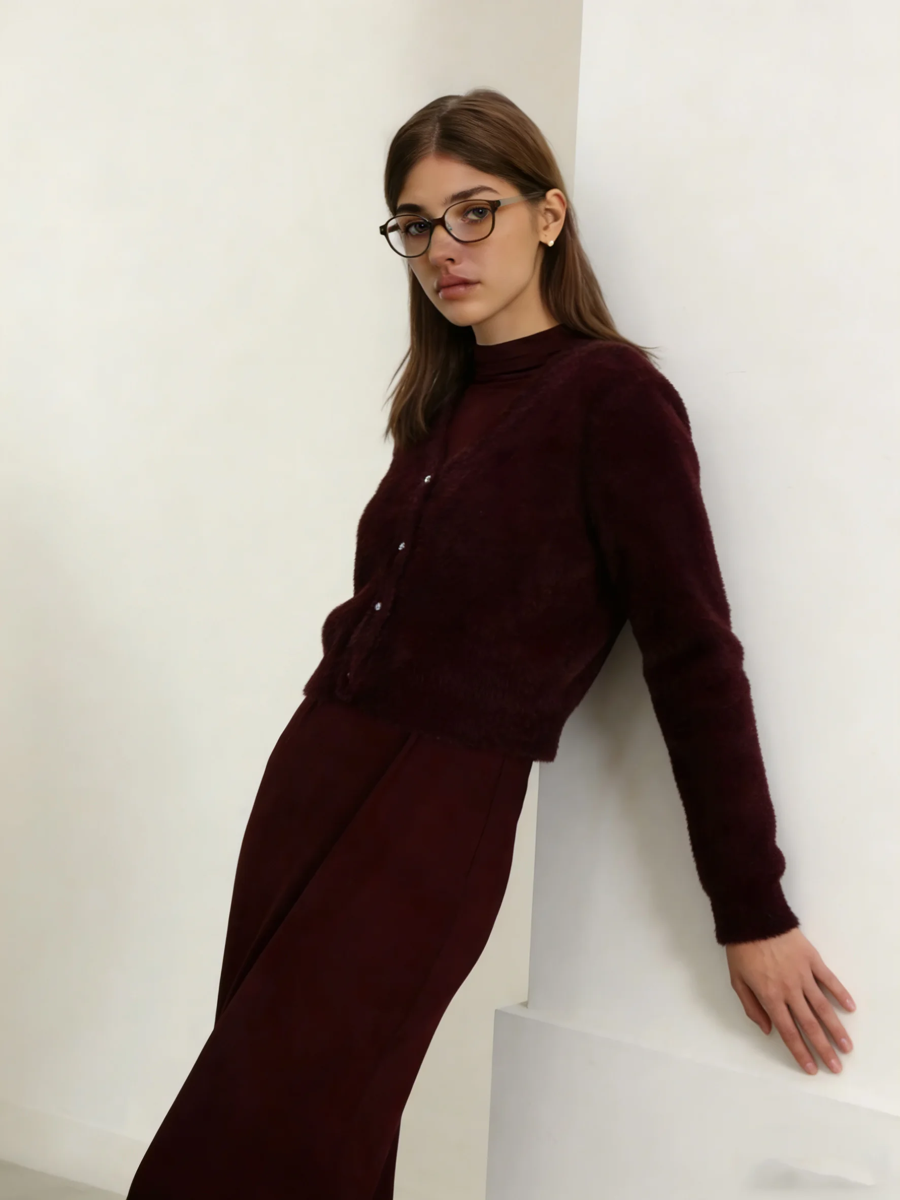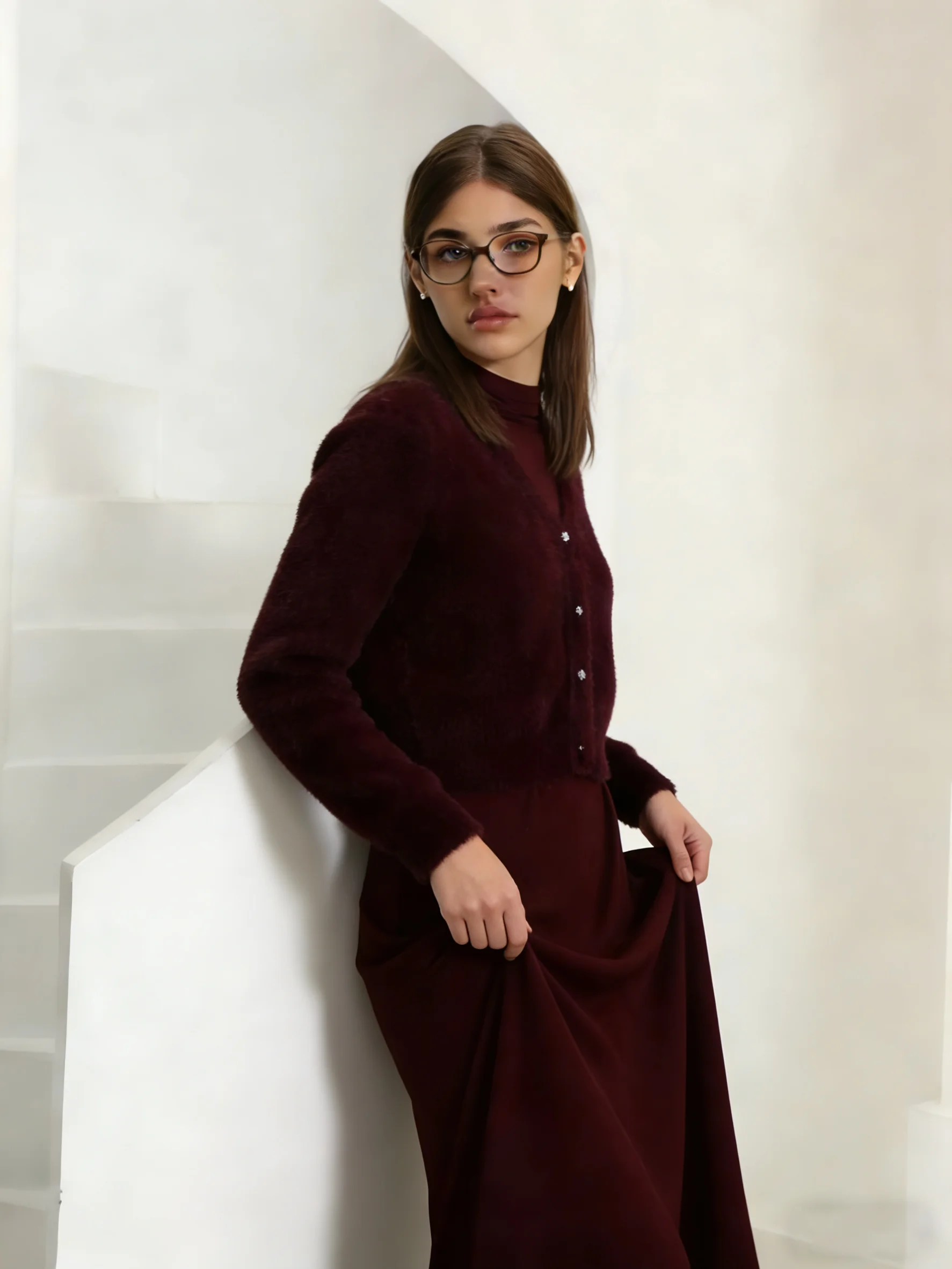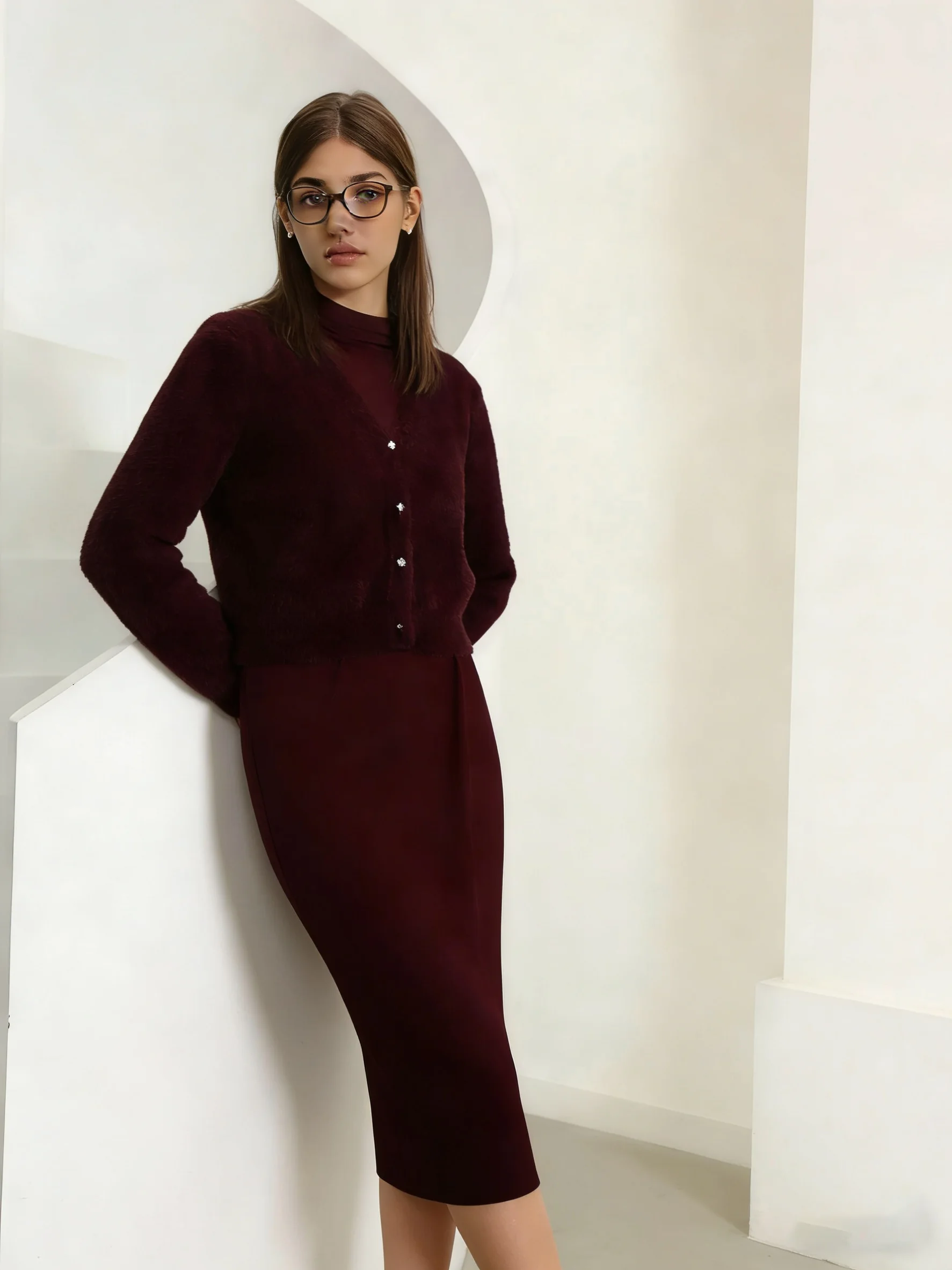 2026 Autumn Winter Women Wine Red Thick Warm Coat Long Sleeve V-neck Soft Fleece Jacket Precious Bright diamond button Warm Wear