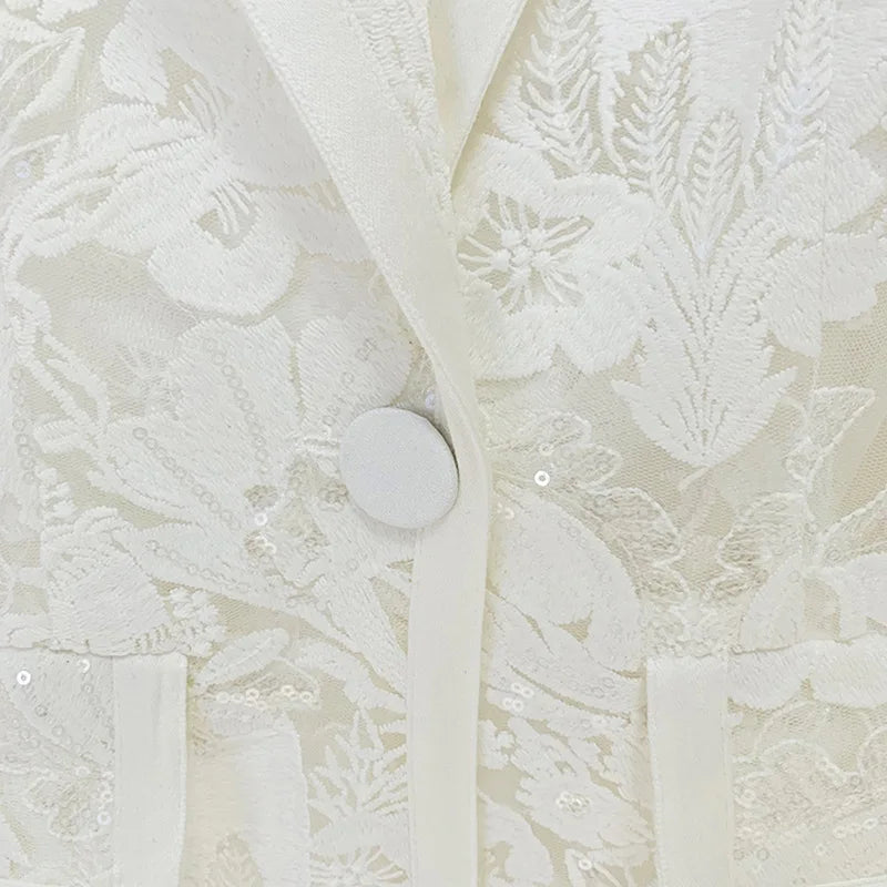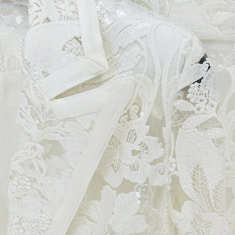JAMERARY New Fashion Mesh Embroidered Blazers Jackets Wide Leg Pants Sequins Suit Coat Women Pants White Lace Two Piece Set
