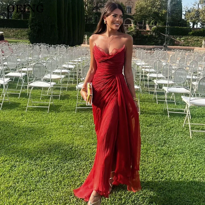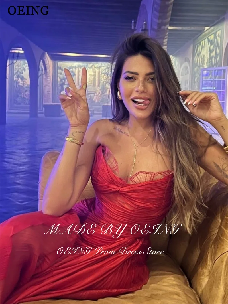 OEING Charming Red Mermaid Prom Dress V-Neck Sleeveless Draped Pleats Lace Evening Dresses 2025 فساتين سهرة Customized