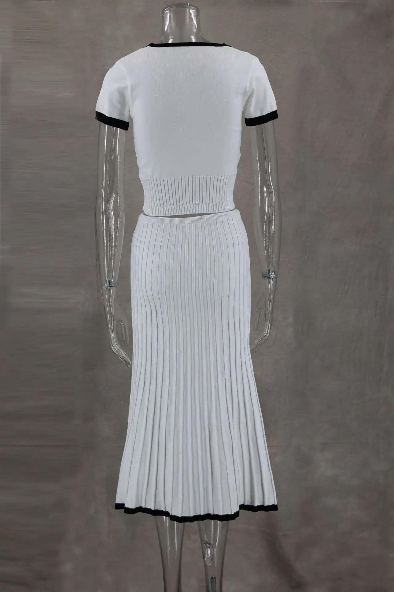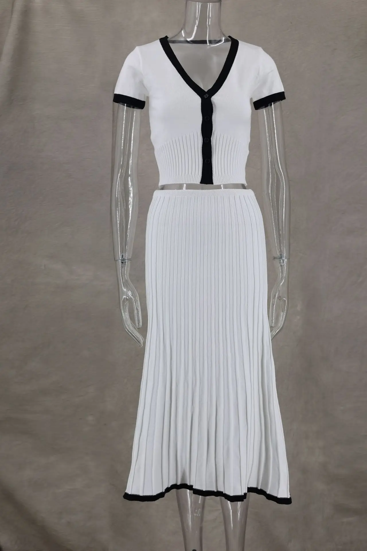 Spring Summer Women White long Skirt Suit Short Sleeve V-neck crop top pleated set elegant dress 2 piece skirt set Outwear