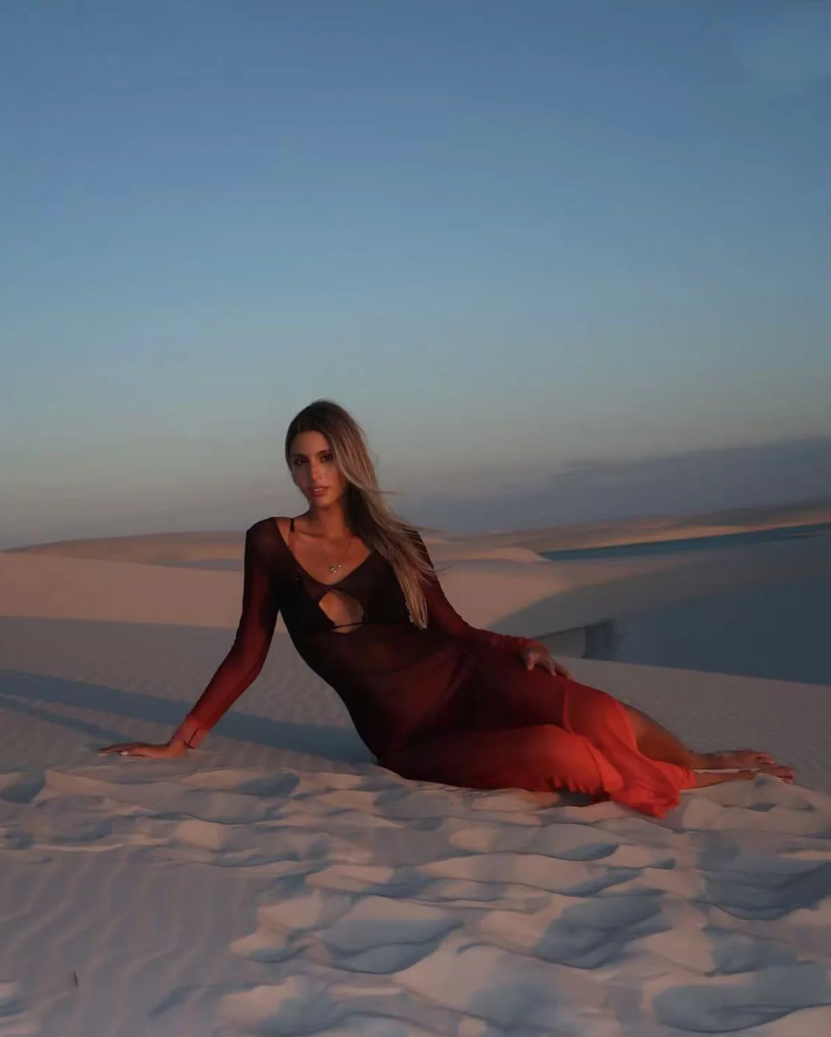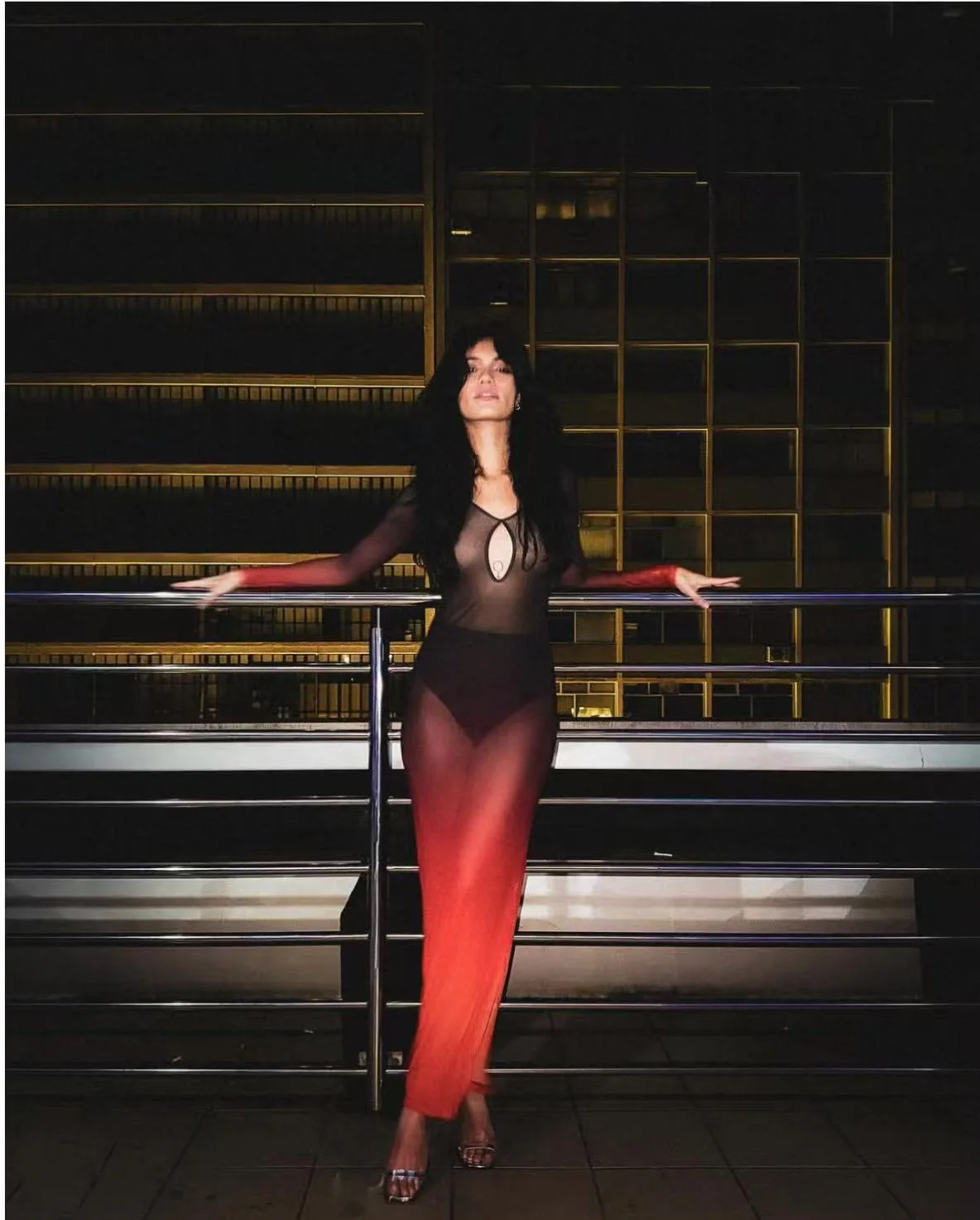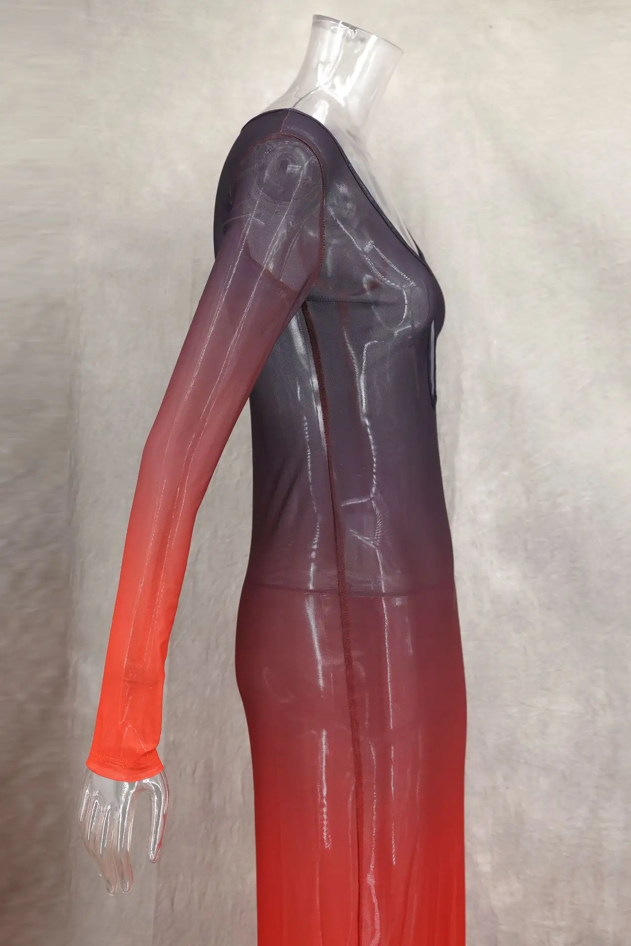VEITCHE Fashion Women Vacation Style Beach Long Dress Contrast Color Gradient Perspective Hollow Slit 2025 Summer Maxi Dresses
