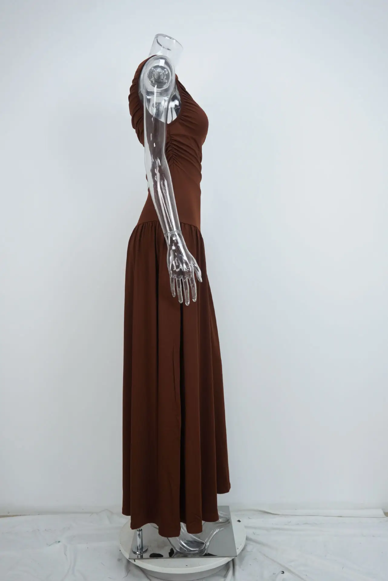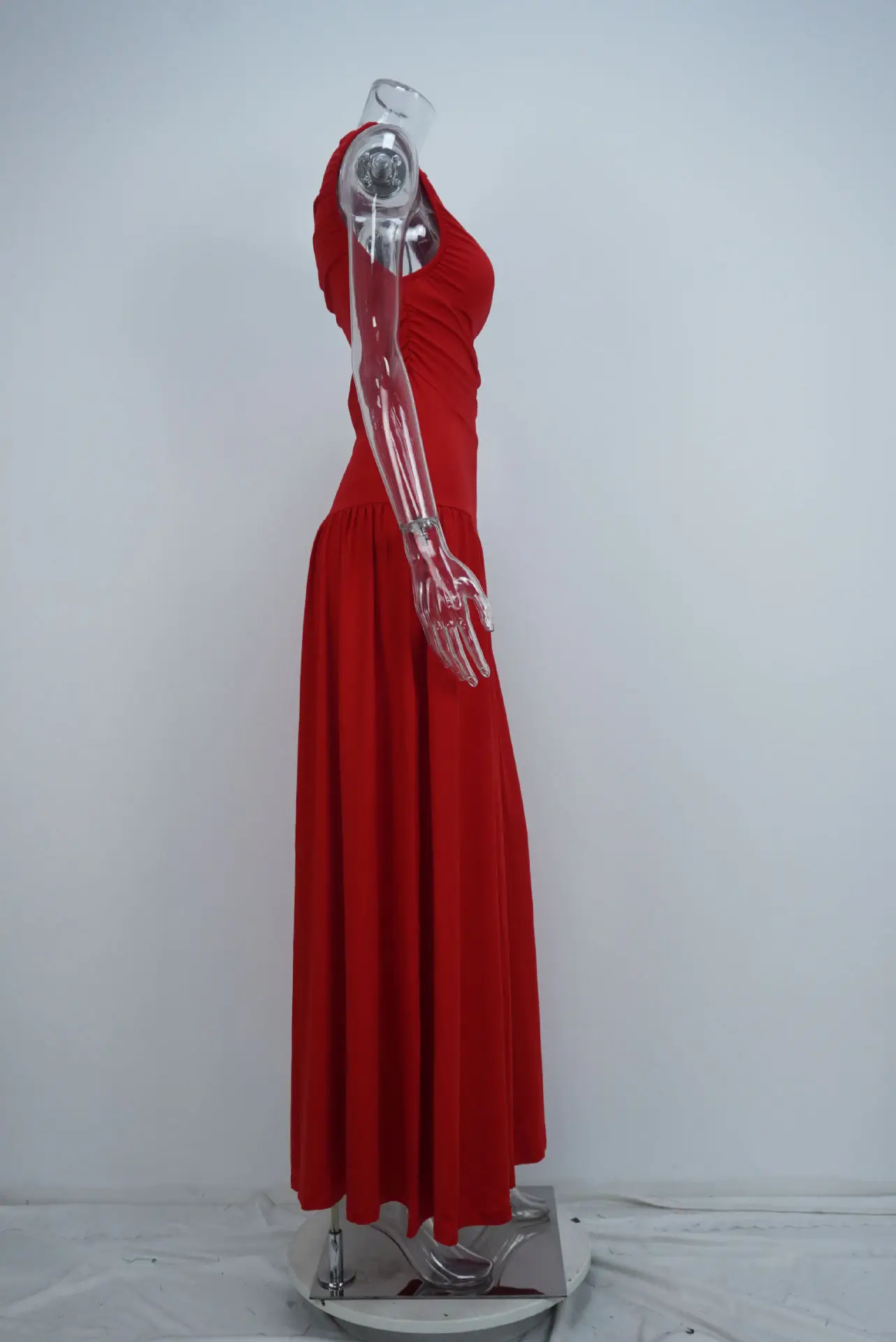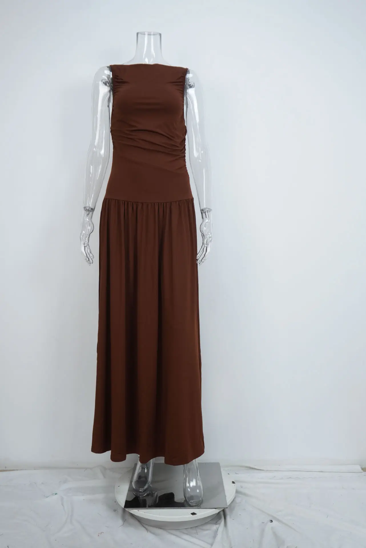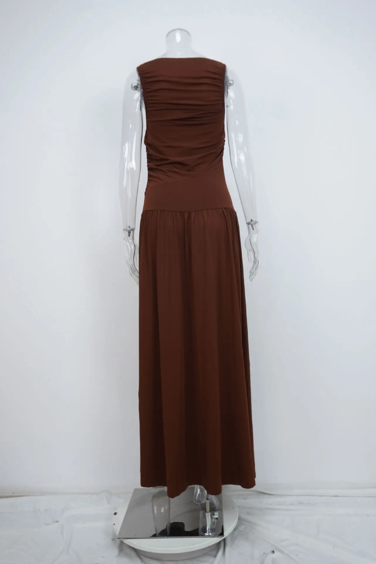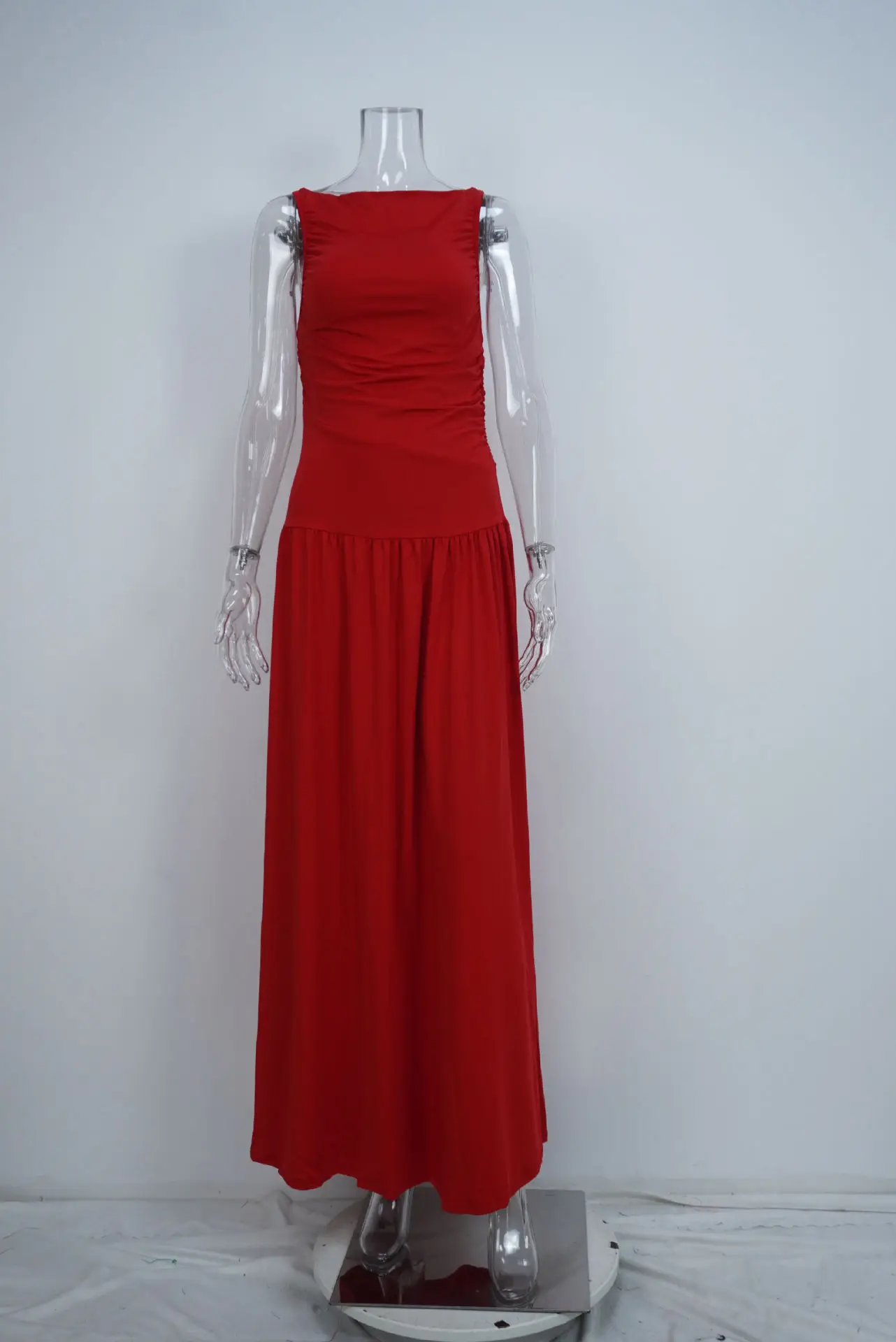 VEITCHE Summer Elegant Women Sleeveless Maxi Dress Milk shreds Neck High Waist Ladies Sexy Ruched Long Dress New Party Gown