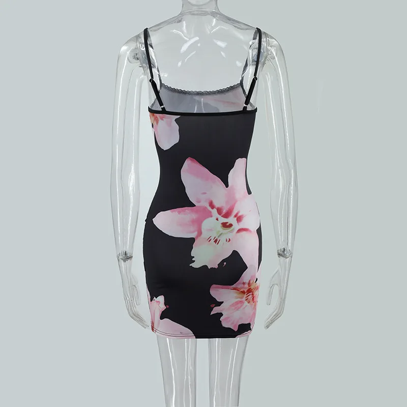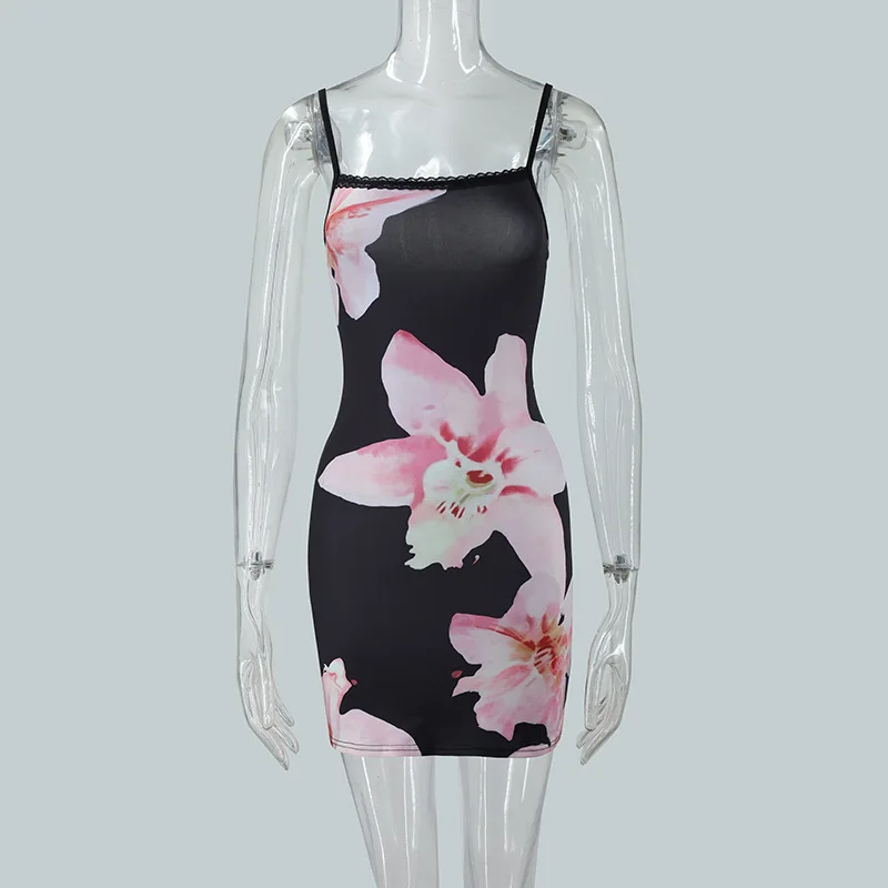 Women Summer Sexy Party Mini Dress Fashion Flower Print Sleeveless Backless Bodycon Simple Dresses Casual Club Elegant Dress