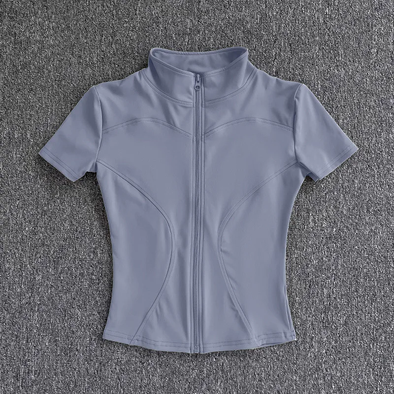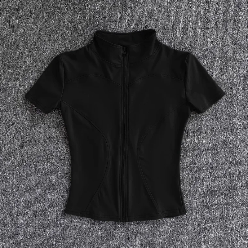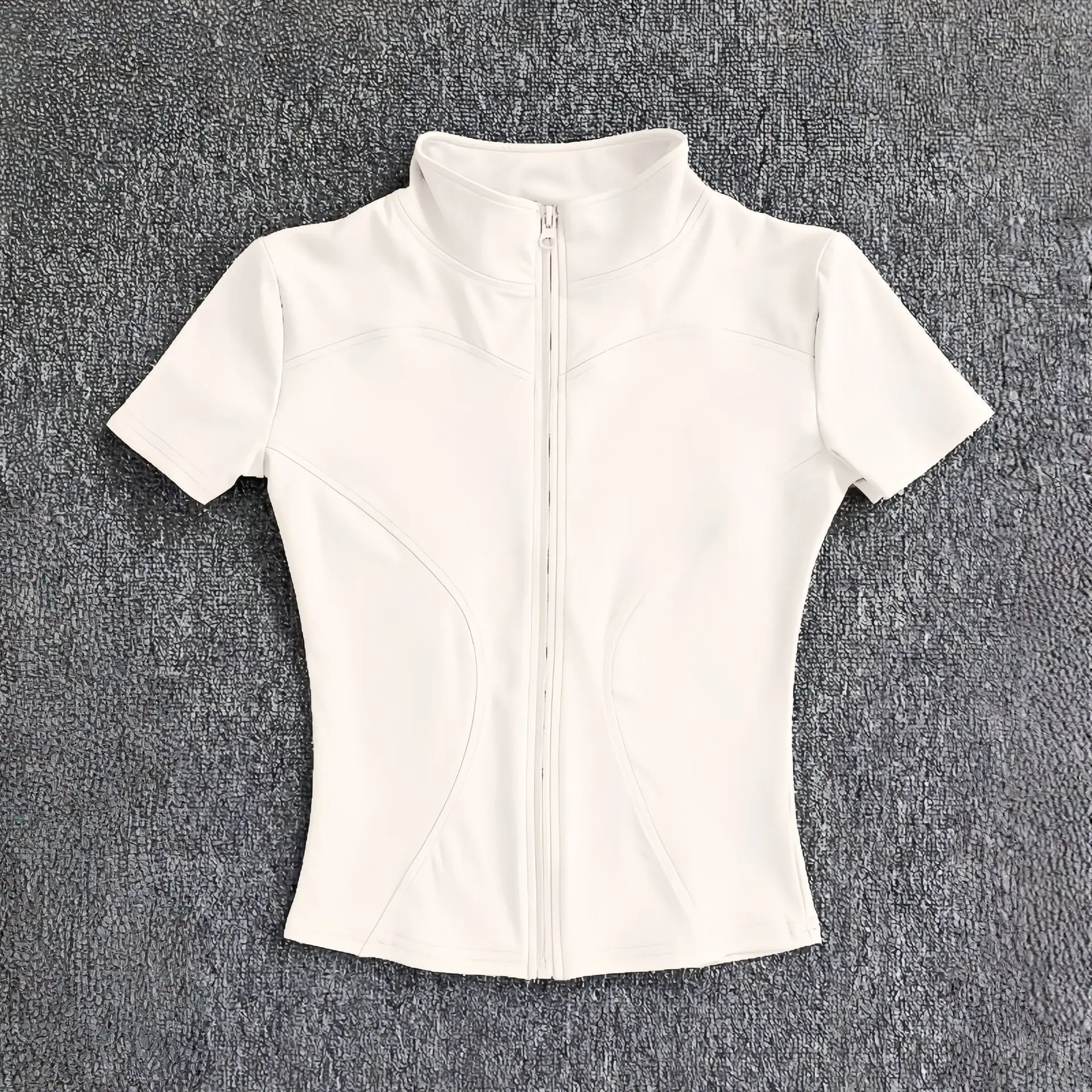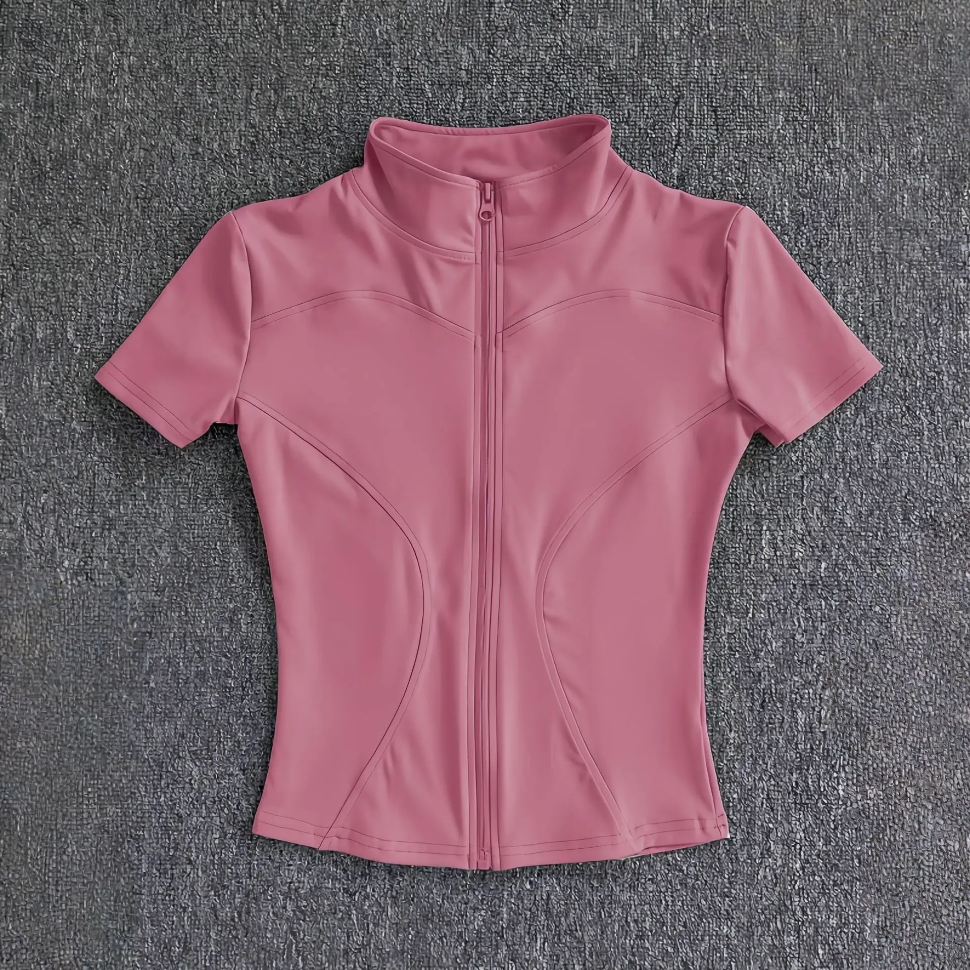 Women's Solid Color Slim T-Shirt Summer Quick-drying Stand Collar Zipper Short Sleeves Yoga Shirts Fashion Female Top