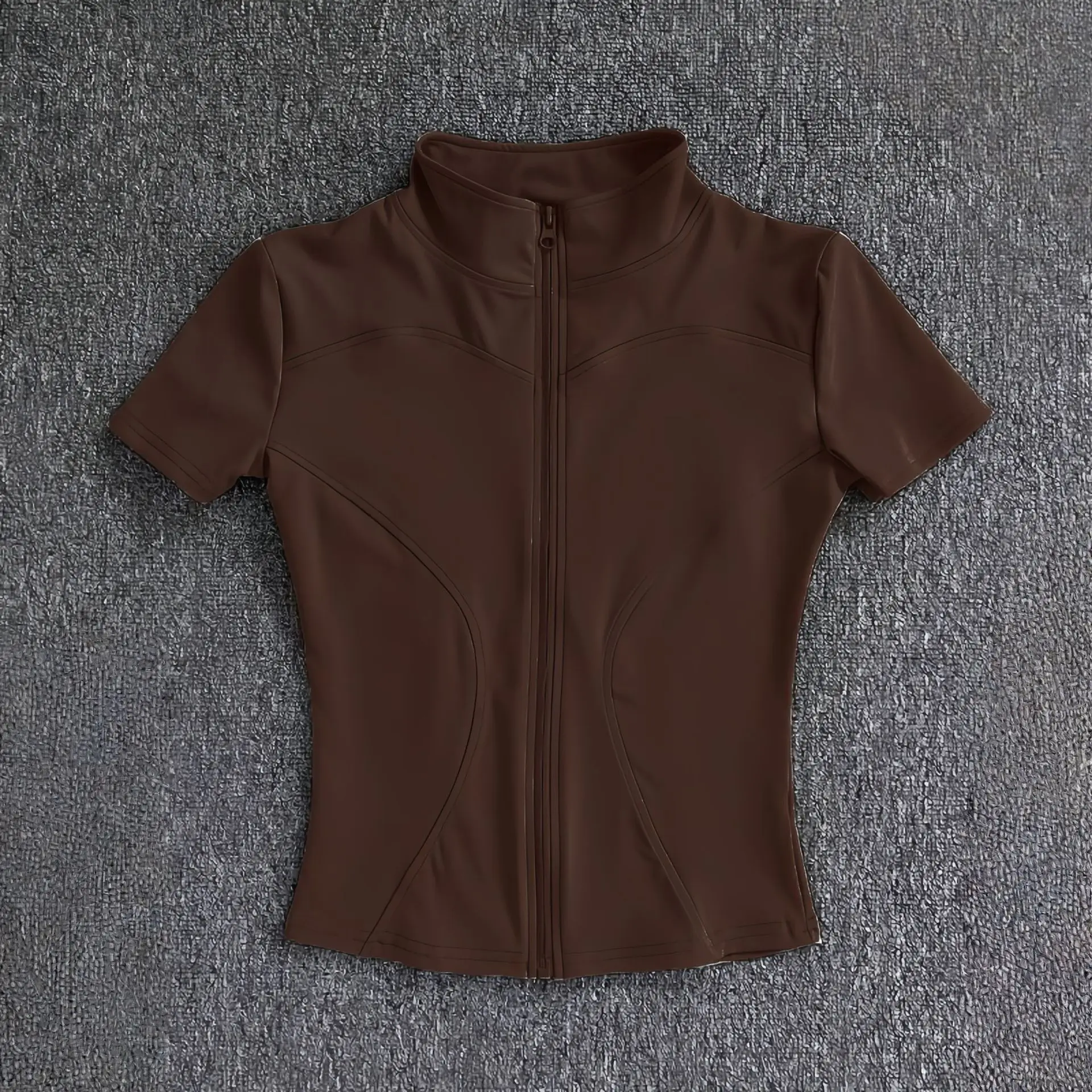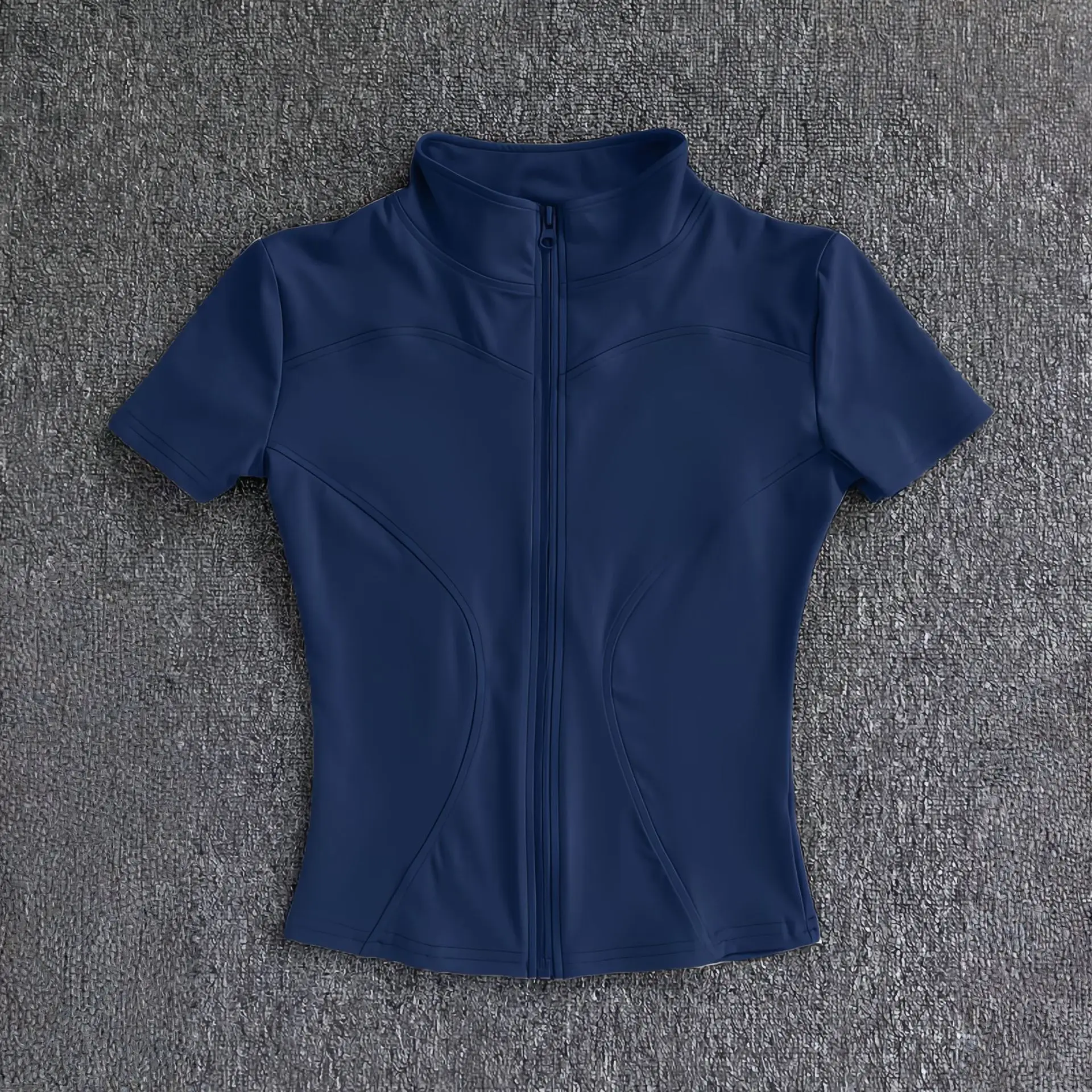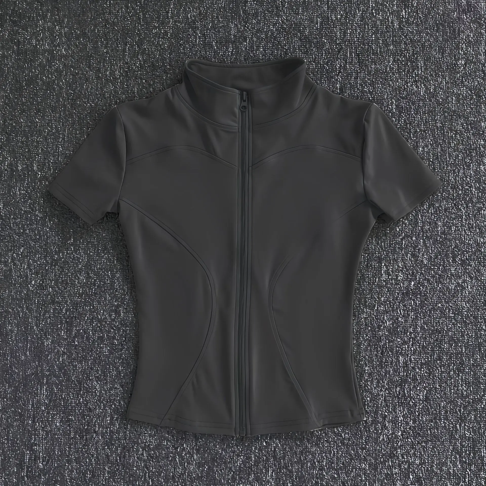 Women's Solid Color Slim T-Shirt Summer Quick-drying Stand Collar Zipper Short Sleeves Yoga Shirts Fashion Female Top